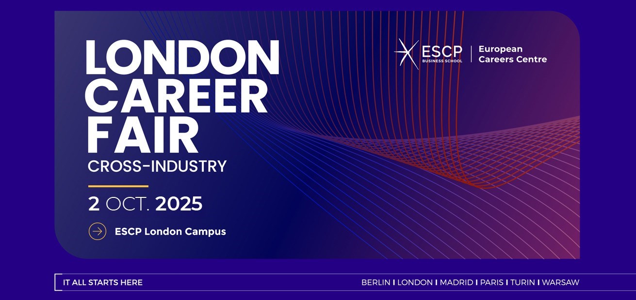 We would like to remind you that on 2nd October, ESCP's London Campus will host its Annual Career Fair. This flagship event brings together leading companies across various industries and over 400 high-calibre multilingual students from programmes, including the MSc in Energy Management, MSc in Digital Transformation Management and Leadership, MBA in International Management, Master in Management, and Bachelor in Management. More details are available below and here.