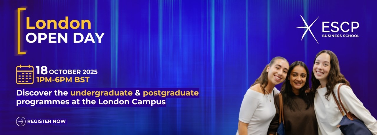 London Campus Open Day: Our doors are opening on 18 October for everyone to discover the undergraduate and postgraduate programmes offered at ESCP London Campus. More information can be found below.